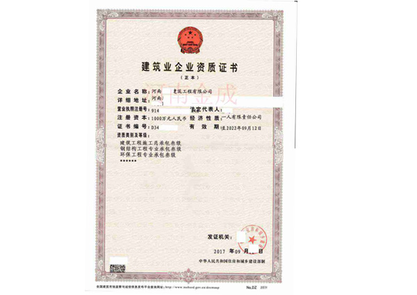 • 建筑業企業資質證書副